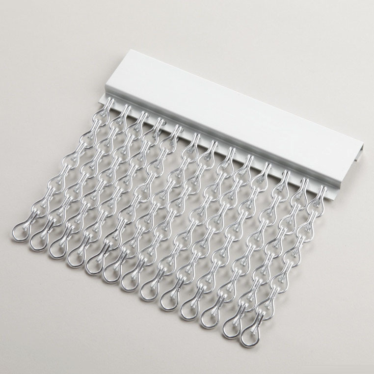 Der Aluminiumkettenfliegschirm ist mit einem Metalldrahtgitter aus 1,5 mm und 2 mm Drahtdurchmesser gefertigt und bietet sowohl Haltbarkeit als auch Flexibilität.Die unterschiedlichen Drahtdurchmesser sorgen für Festigkeit und Stabilität des Vorhangs, während er sich mühelos bewegen kann, die eine nahtlose Barriere gegen fliegende Insekten schaffen.